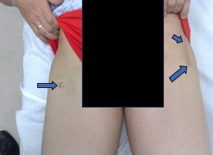 Fig. 1 - Diferença nas cicatrizes da mini-open (à esquerda) e da artroscopia (à direita)